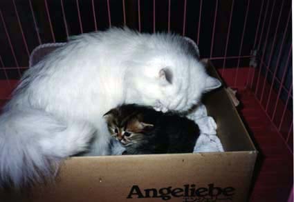 巣箱で母親と