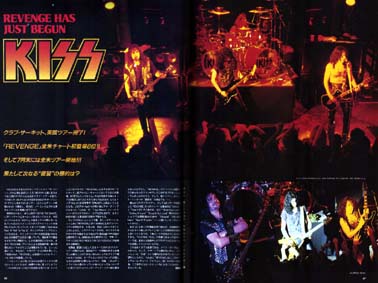 イギリスでは既に"GOD GAVE ROCK'N' ROLL TO YOU II"のシングルがトップ10ヒットになるなど、エリック・シンガーを含む新生KISSを迎えるお膳立ては充分に整っていた。雑誌等での露出もかなり早い時期から、しかも継続的に行われ、まさに[REVENGE]アルバムによる復習劇の第一幕の完璧なるシナリオがそこには用意されている、といった風だった。ちなみに、そのツアーとほぼ同じくして発表された[REVENGE]は英国ナショナル・チャートに10位で初登場している。