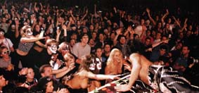 アメリカのコミックブックから抜け出てきたような派手なコスチューム、ヘビメタの元祖とも言われる雷鳴のように重厚なサウンド。 クィーン、エアロスミスらと並び70年代カリスマ的存在のロック・バンドだったキッス。今30代の読者の中には、そんな彼らに相当ノメリこんだ人も多いはず。その後、シンボルマークのメークをやめ、メンバーも変えて活動したが、興行的には失敗。 だが、96年に再び初期メンバーを集め、デビュー当時のコンセプトで再スタートしたところ、再び再大ブレイク!新譜の「PSYCHO CIRCUS」は瞬く間にゴールドディスクを獲得し、この伝説的アイドル・バンドのカムバックに、全世界のファンが熱狂したのである。キッス最大の魅力のひとつは、その強烈なライブ・パフォーマンスだ。 そして、その会場で必ず目にするのが、クレイジーなグルーピー軍団の存在。しかも超美女ばかりだ。当然「PLAY BOY」はキッス復活を祝すと同時に、彼女たちを裸にしない手はないというわけで、今回の特別ビクトリアルを思いついたのである。 ジーン・シモンズの服を脱がそうとやっきのギャル、ピーター・クリスの尻を追い回す娘たちなど、本物のグルーピーの他にも、キッス・マニアの「PLAY BOY」モデルまで参加して、彼らのパフォーマンスさながらのハチャメチャなビクトリアルができあがった。ぜひその楽しさを堪能していただければ幸いである。 |