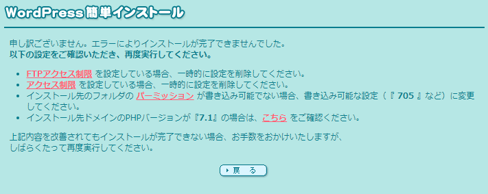 以前この簡単インストールって機能が無かったのでこのサイトは自分でインストールしたのだが、その時は特に問題無く出来たでの困る事は無かったのだが・・・