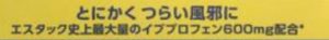 ”エスタック史上最大量のイブプロフェン600mg配合”と言う文字が目に入った。