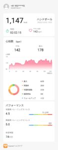 | 本日 (2025/10/30) | 1,147 kcal | 142 bpm | 178 bpm | 5.0 (過度) | 74 時間 |