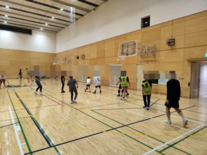19時30分から男子3チーム、女子2チームに分け、人数が足りない時は他からヘルプで参加してもらいゲーム形式の練習をいつものように行う。