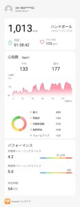 Huaweiヘルスケア(ハンドボール表記=バスケ)の記録に基づき、今回のパフォーマンスを分析します。