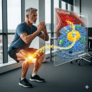 「素晴らしいタイミングです。先ほど摂取した『カンパン』が消化され、糖質が回り始めている時間帯です。このタイミングで動くことで、インスリンに頼らず糖を取り込む『GLUT4の活性化』が起こります」