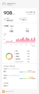 種目: バスケットボール(デバイス記録上はハンドボールモードを使用)* 総活動時間: 1時間55分53秒