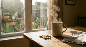 ゆっくりと白湯をマグカップに注ぎ、いつものビタミンとミネラルのサプリメントを手のひらに乗せる。