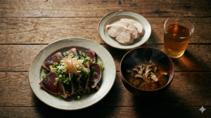 週に2回から3回、カツオのたたきやマグロの刺身を食卓に並べること。