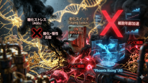 なるほど、糖分や脂質の摂りすぎ(糖化・酸化)が細胞をサビさせ、老化スイッチを押してしまうのか……。